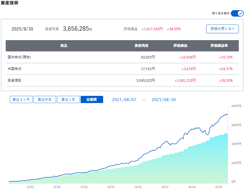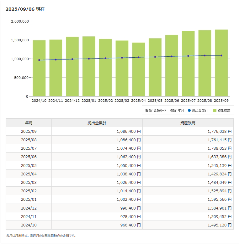 2025年8月末 | 1,761,415円 | 1,086,400円 | +23,362円 | 101.34% |